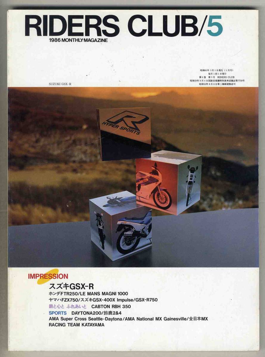 書名/記事: 86.5 ライダースクラブRIDERS CLUB/スズキGSX-R、ホンダFTR250、マーニ1000、ヤマハFZX750、スズキGSX-400Xインパルス、スズキGSX-R750、キャブトンRBH350、…