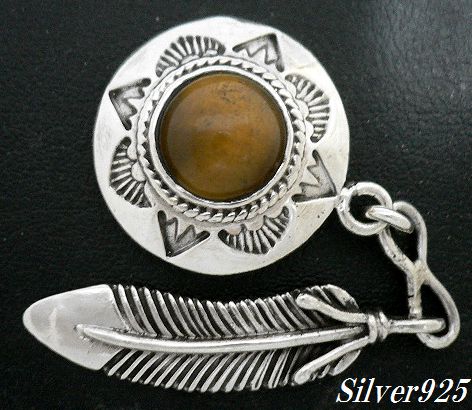 - シルバー925銀の天然石タイガーアイ付フェザー チャーム コンチョ/1点のみ