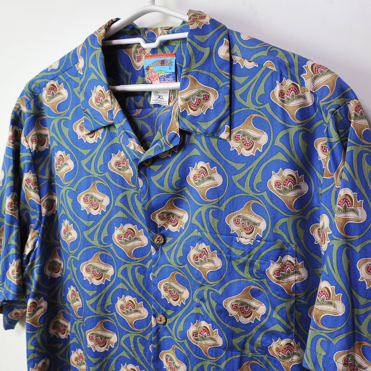 - 古着●レインスプーナー アロハシャツ 南国の華 ネイビー XL xwp