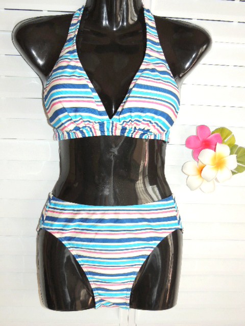 - Nikki ネックホルダー セパレート水着 9号/M ホワイト地×ボーダー