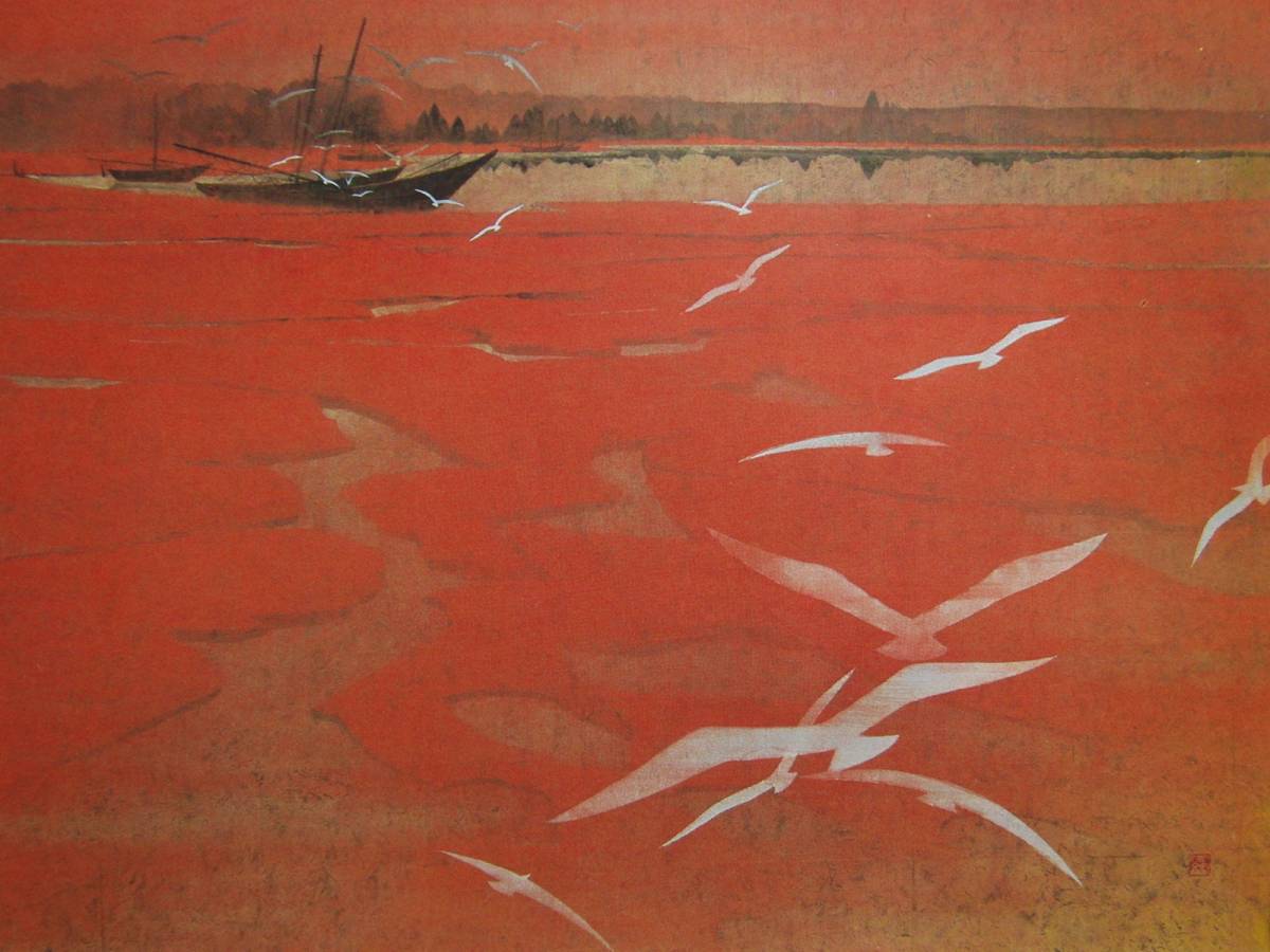 - 斉藤博康、【サロマ湖秋】、希少画集・画版画、高級新品額・額装付、状態美麗、日本画家、送料込み
