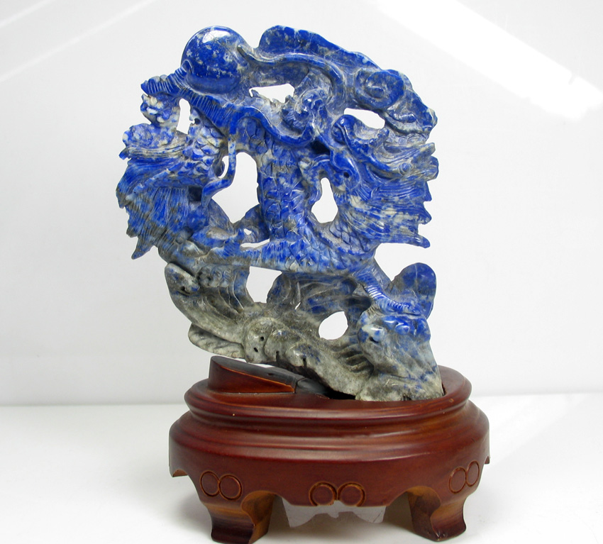 - 半額在庫処分 天然ラピスラズリの透かし彫り龍★F529