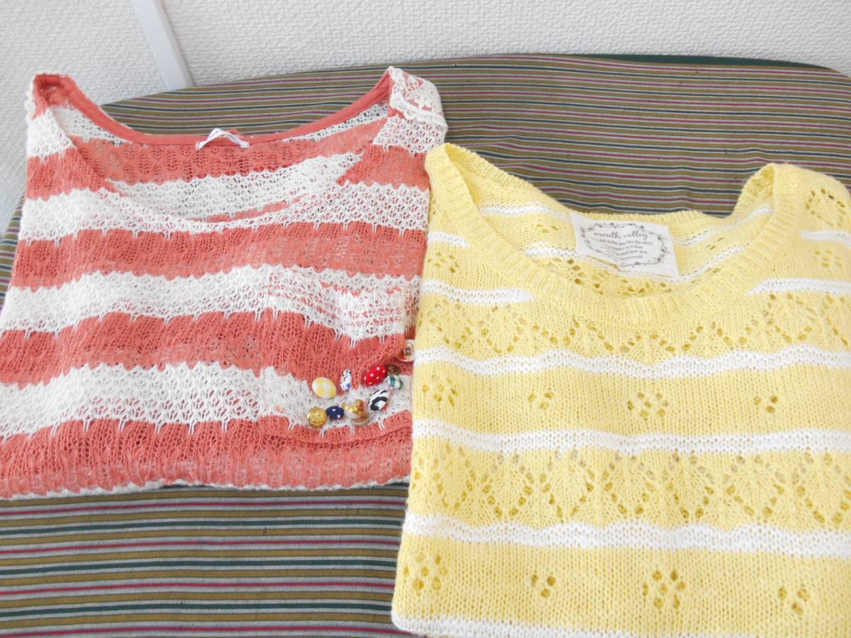 - ★ ふんわりニット 半袖(M・L)2枚 DREA my MINX(白×オレンジ系)M・他(白×レモン色)L