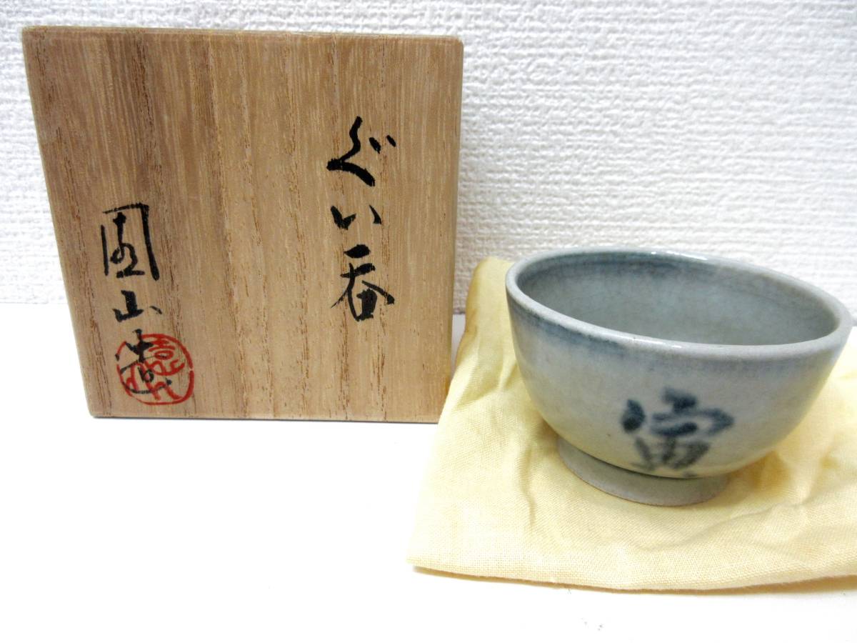 - 極美品■園山作 ぐい呑 寅 虎 とら 成 酒器 箱入 黄布 管理1709 F-6