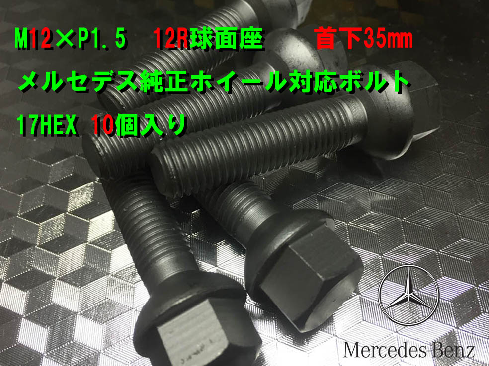 > 純正アルミホイール対応 ボルト/メルセデスベンツ Aクラス(W168)サイズ M12-P1.5 球面(R12)首下長さ35mm 10本セット価格