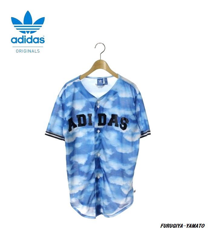 > #古着屋大和 #セール中 #送料無料 #限定 #adidas オリジナルス #青空模様 #メッシュ #ベースボールシャツ #ゲームシャツ L 青 スカイブルー