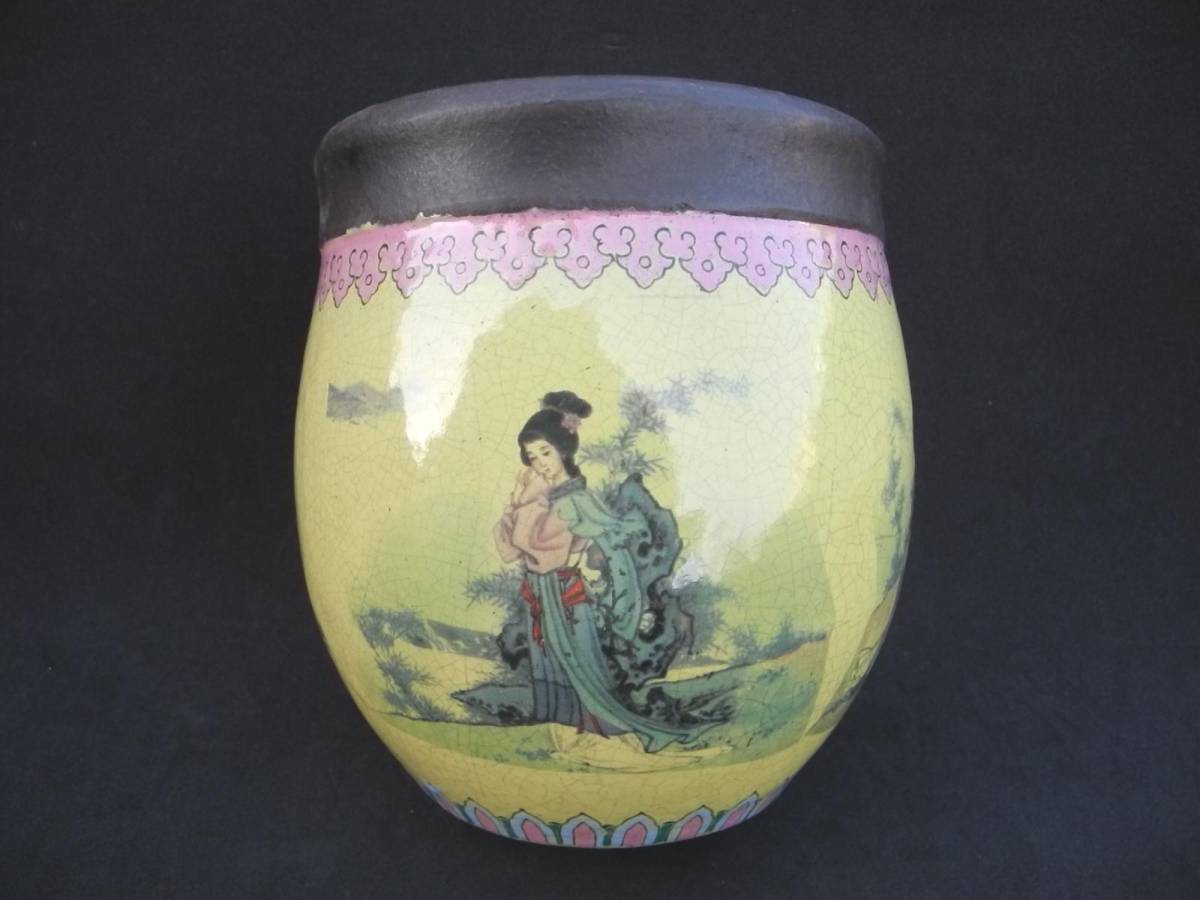 - 中国茶器 宜興紫砂加彩釉四大美人圖茶葉罐 孟臣銘 唐物