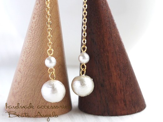 > ◆◆+angelo+コットンパールとスワロフスキー パールのチェーンピアス(p-231)ホワイト G cp001 シンプル チタン 樹脂 イヤリング