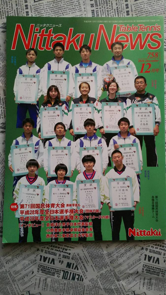 - 【卓球 ニッタク NITTAKU ニュース 2016年12月号】中古美品 一読したのみ