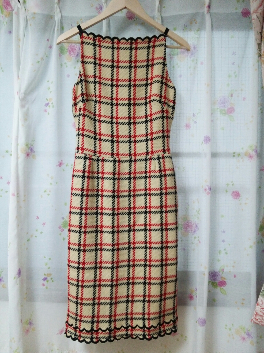 > ★美品★TOCCA トッカ スカラップ ドレス ワンピース 2* チェック 美ライン ウール素材 毛 ロング レディース スカート