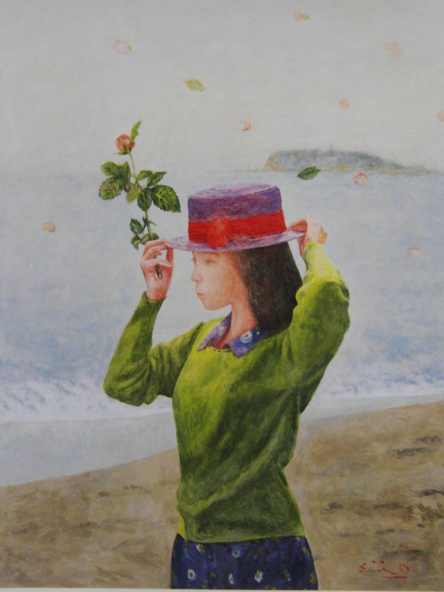 - 大津英敏、海からのたより、希少な額装用画集より、新品高級額装付、状態良好、送料無料