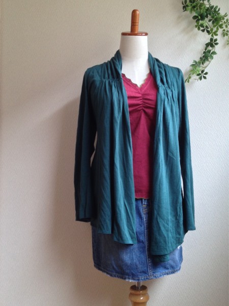 - ★anna kreek 日本製★深い緑のギャザー入りカーディガン★