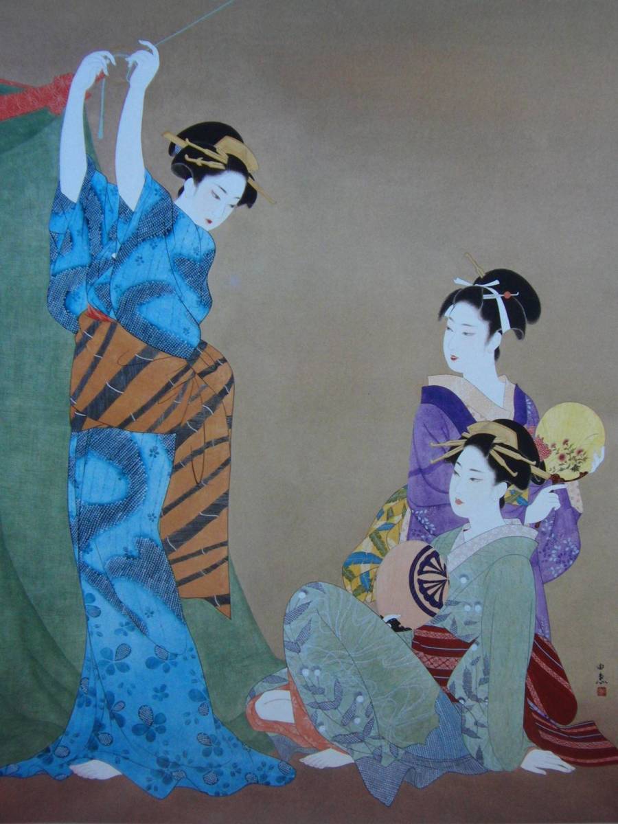 - 今野由恵、「蚊帳」、希少豪華大判画集画、高級新品額・額装付、状態美麗、美人画、日本画家、送料込み、45