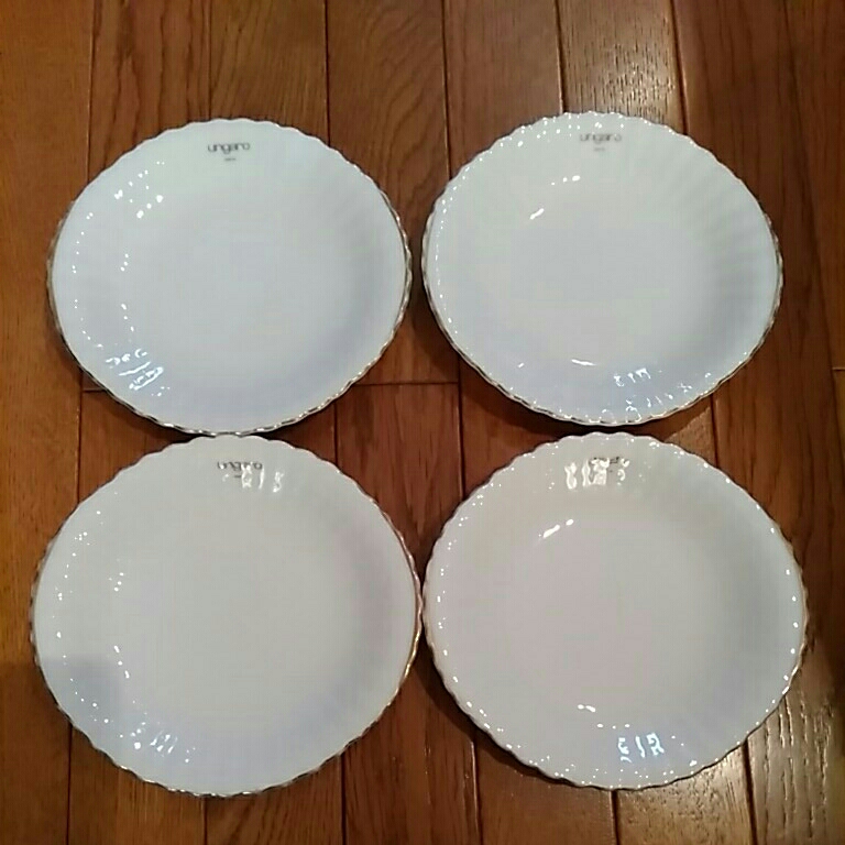 - デザート皿 取皿 オバール型 楕円 ウンガロ ungaro 白色 ゴールド縁取り 4点