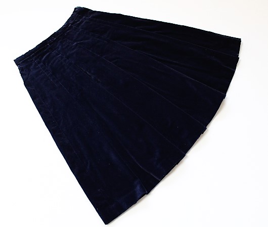 > 美品*AFRICAN BEAT CLUBPART-Ⅱ*アフリカンビートクラブ*紺*べロア素材*タックプリーツ*フレア*ひざ下*スカート*ウエスト64*M*レディース