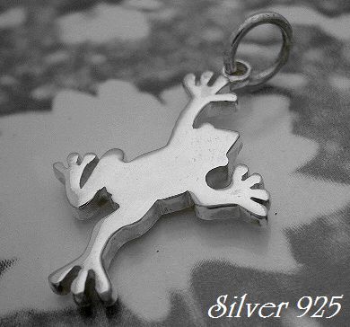 - シルバー925銀の張り付きカエル 鏡面かえる型プレート ペンダント