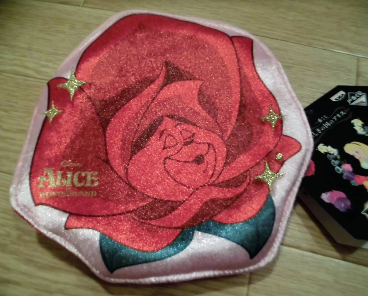 - 即決☆新品☆可愛い♪ 不思議の国のアリス & 薔薇 ( お花 ) 絵柄 ベロア素材ポーチ ♪ 赤 と ピンク