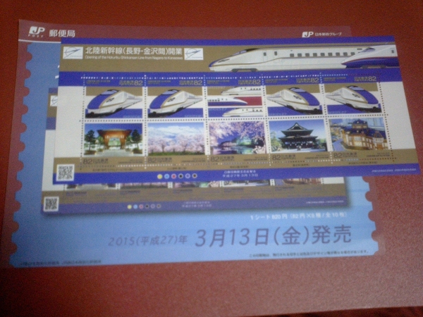 - 日本郵政グループ切手 北陸新幹線(長野・金沢間)開業+解説書付