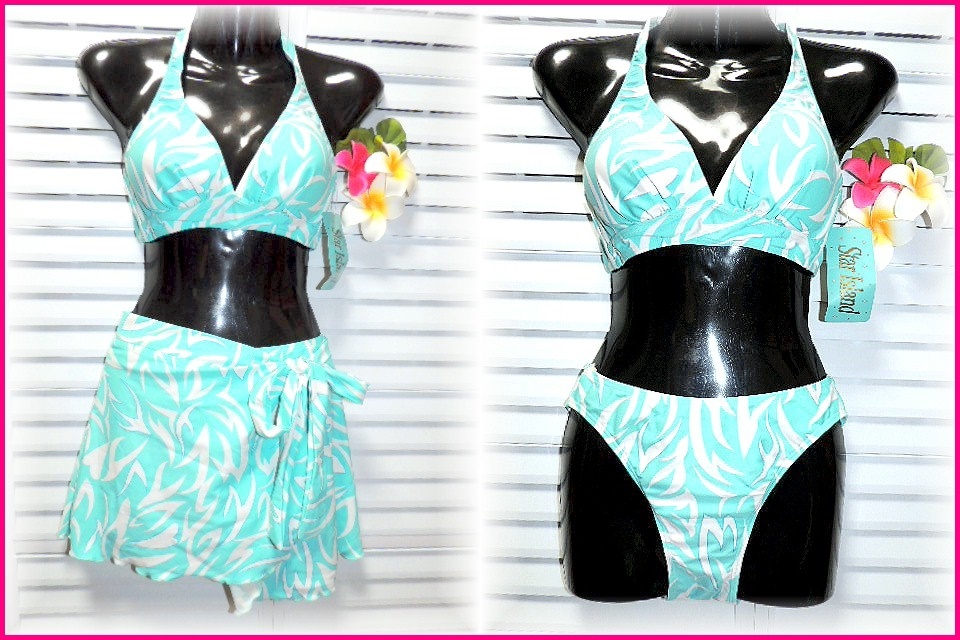 - Star Island 日本製 セパレート水着パレオセット 9号/M ライトブルー×ホワイト(ブルーラメ)