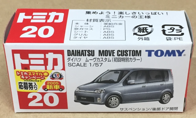 - トミー トミカ 20 ダイハツ ムーヴカスタム シルバー 2005年8月(初回特別カラー)未陳列品