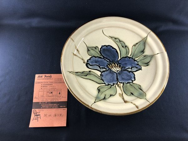 - 未使用品★ 益子焼 花柄 大皿 飾り皿 絵皿 箱あり管理1806 N-1