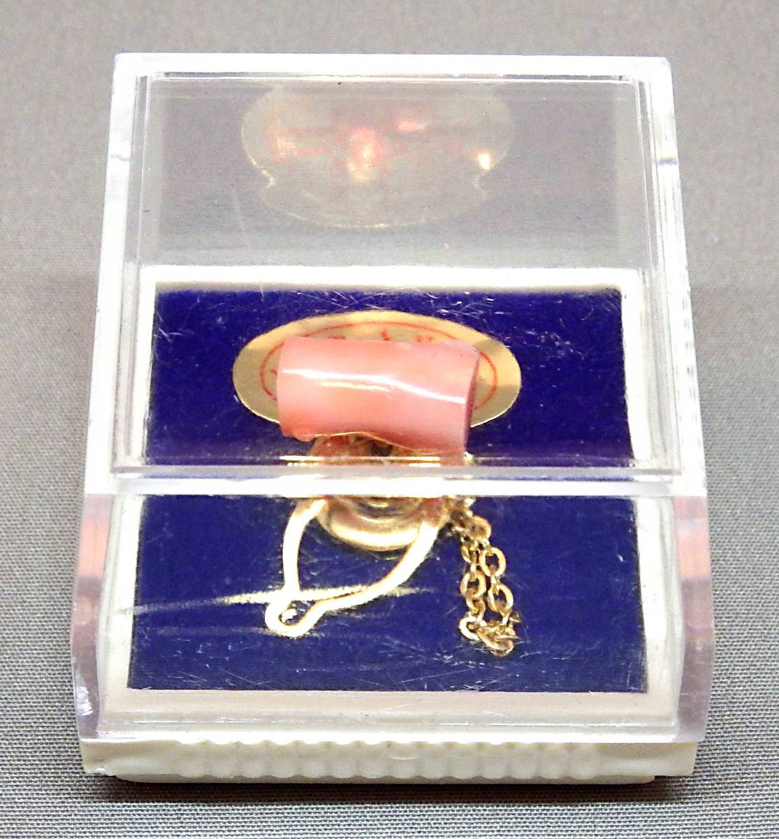 - EU-9322■本珊瑚 タイタック サンゴ オレンジピンク ケース付き 中古