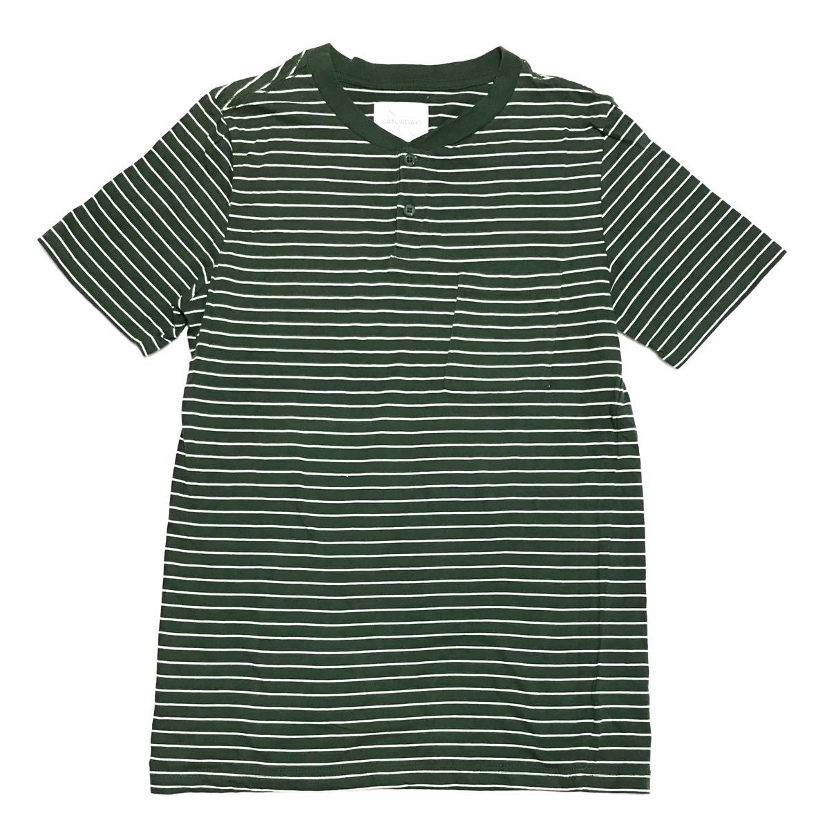 - SATURDAYS SURF NYC サタデーズサーフ 胸ポケット ヘンリーネック ボーダー 半袖 Tシャツ S