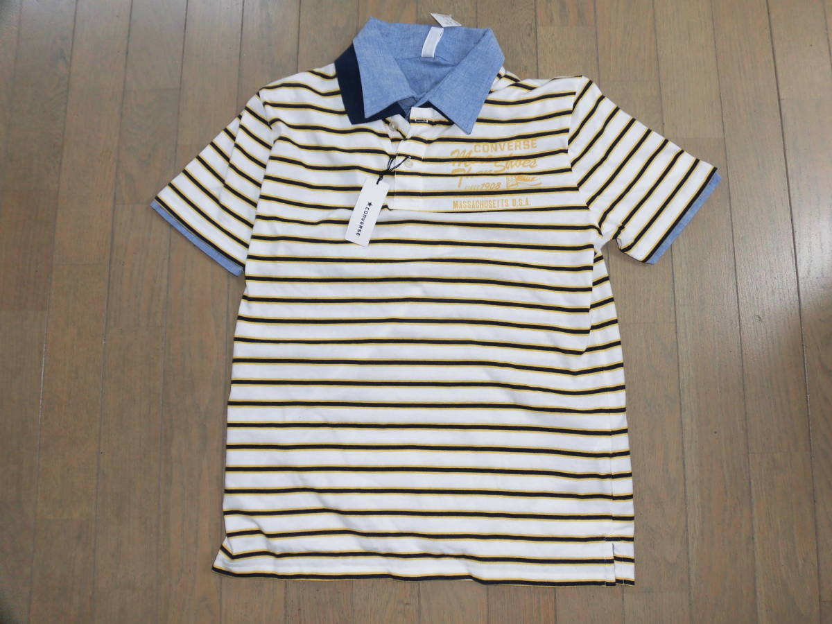- 新品★コンバース★重ね着風ボーダー半袖シャツ★M