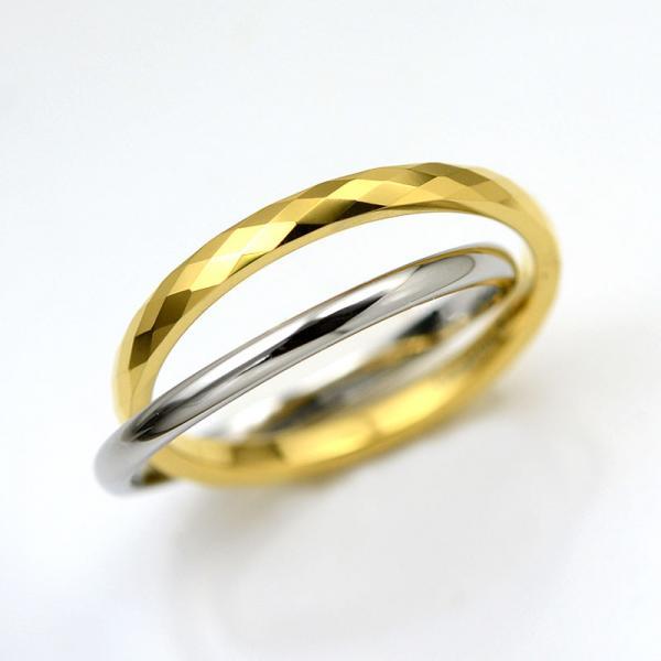 > ★お勧め★変色無★手入れ不要★肌に優しい★金属アレルギー&温泉&海水浴OK★甲丸ダイヤカットゴールドタングステン&ステンレス2連リング