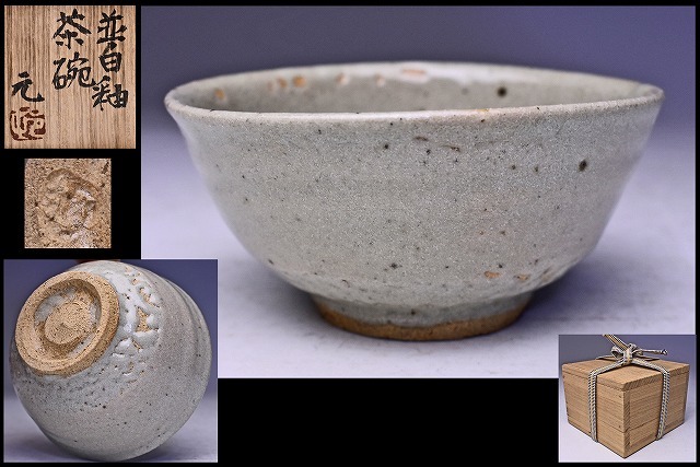 > 村田元 ★ 益子焼 ★ 並白釉茶碗 ★ 共箱 ★ 茶道具 ★ 民芸陶 ★ 検 人間国宝 浜田庄司 村田浩 ★