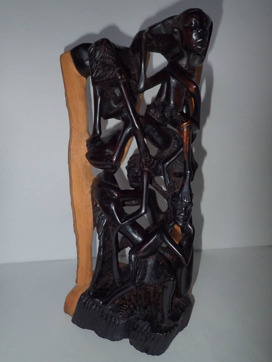- アフリカ タンザニア ウジャマー 男性 7人 黒檀 高さ約31.9㎝ 木彫り インテリア 置物 彫刻 マコンデ彫刻