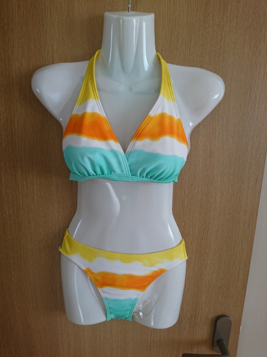 > ☆オレンジ×白×黄色×ミントグリーン☆ボーダー風のビキニ2点セット☆サイズ150☆関西ファッション連合☆