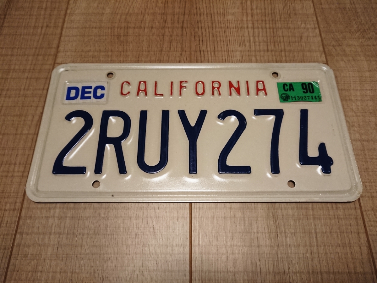 > カリフォルニアナンバープレート 1990 2RUY274 USDM stance truckin lowrider 北米 アメリカ ライセンス フレーム 90's