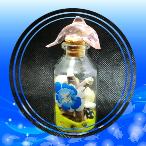 - 【メルヘン・おしゃれ♪】ピンククリスタルのイルカ付きコルク いろんな貝殻が入った かわいい小瓶型 星の砂 インテリア小物 オブジェ