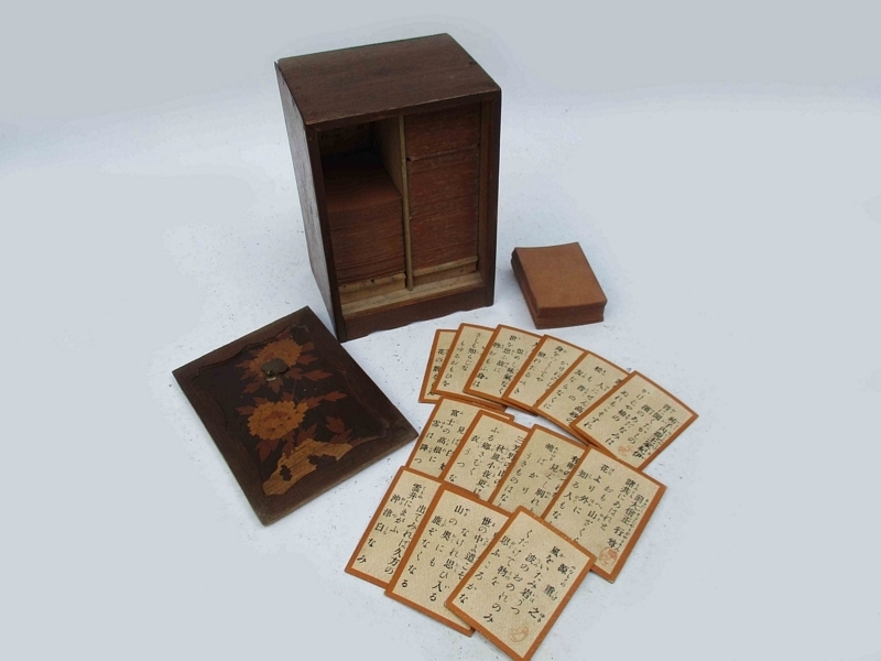 - ■蔵出し 百人一首 木箱入り[ 象嵌] №4402■