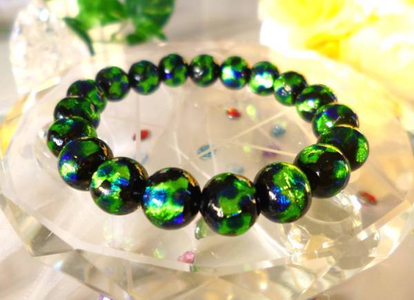 > ☆可愛いとんぼ玉(トンボ玉)☆きらきら輝く☆ホタルガラス☆綺麗なグリーンブルー♪ ☆10mm☆ ☆16cm☆