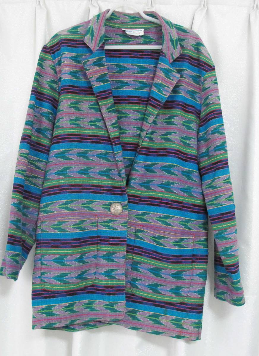 - USA/CENTRAL FALLS/中肉/綺麗なネイティブ柄/ロングテーラードジャケット/コンチョボタン/希少品/ヴィンテージ