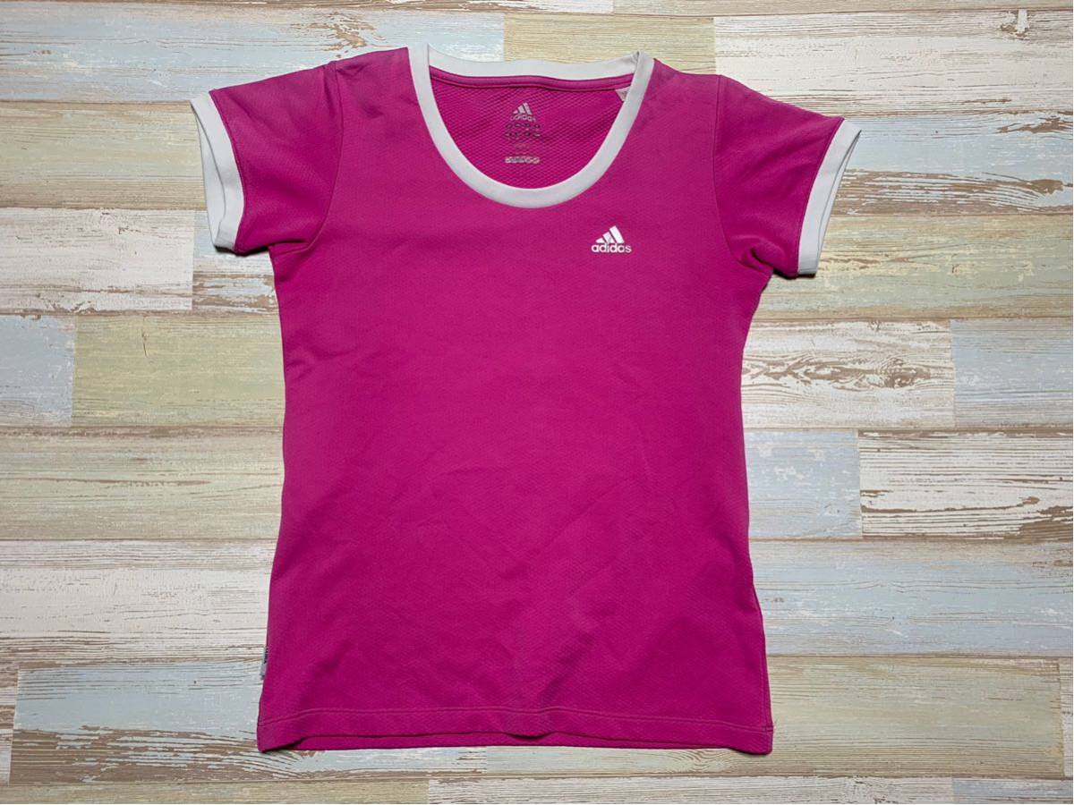 > c121 adidas■アディダス UVケアー Tシャツ レディース■ピンク×白 身幅42着丈55■ゆうパケ210 ゆうパックおてがる60 レタパ510