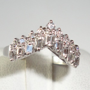 - 送料無料 pt900ダイヤ18石0.41ctV字リングused 質屋出品