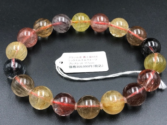 > 最上級AAA『福禄寿のパワーが宿るミックスルチルクォーツ』11.5㎜ブレスレット 男性サイズ パワーストーン 入手困難別格品