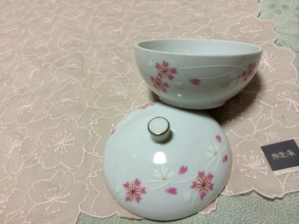 - 撫松庵製 櫻花弁柄綿製ハンカチ41×41cm&錦松梅 清秀作蓋付小鉢