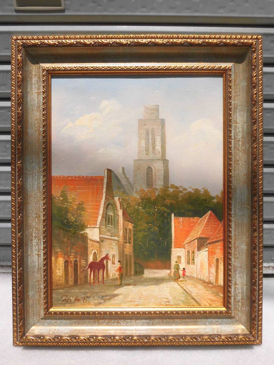 - No153 サイン不詳 「教会と馬」仮題 「模写」 検索 骨董 時代 趣味 収集 鑑定