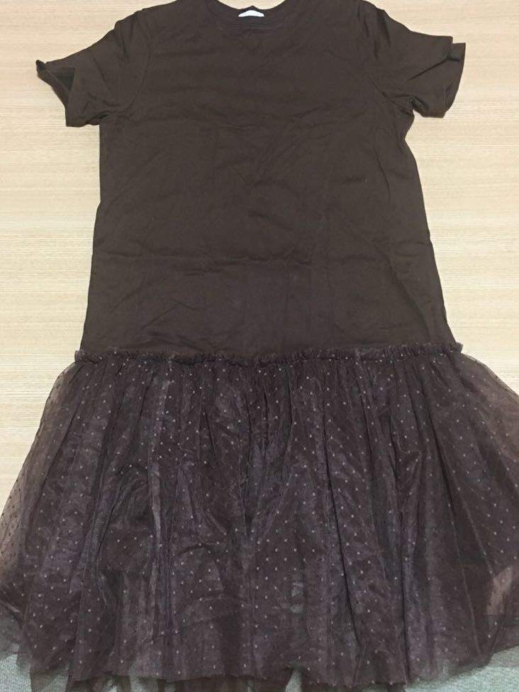 - y▲ アクアガール 個性的なデザイン チュールつきワンピース Tシャツワンピース ワンピ ブラウン 茶色 フリルつき