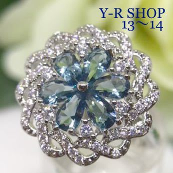> 送料無料★13号14号★ロンドンブルートパーズとキュービックジルコニアのゴージャスリング★レディース指輪シルバー刻印あり新品指輪Y-R