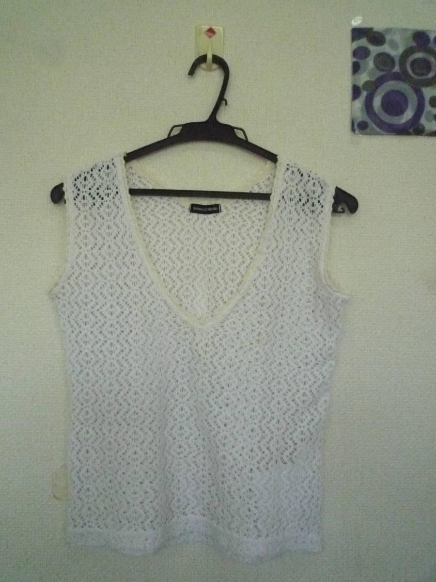 - ★ かぎ針編み風 レース Vネック ベスト ホワイト系 ( M )