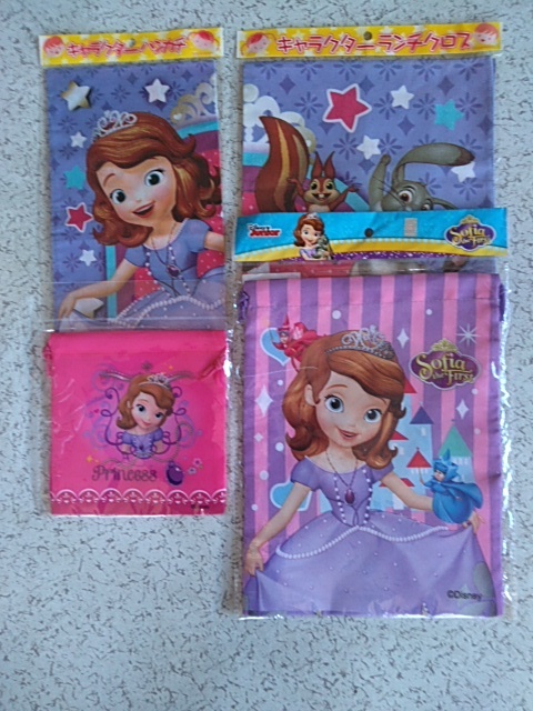 - ちいさなプリンセス ソフィア ランチクロス&ハンカチ&巾着袋2種