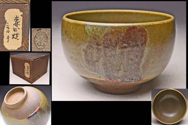 - 時代 ★ 森山窯 ★ 温泉津焼 ★ ぼてぼて 茶碗 ★ 希少で珍しい民芸陶の逸品 ★ 時代木箱 ★ 検 五郎八茶碗