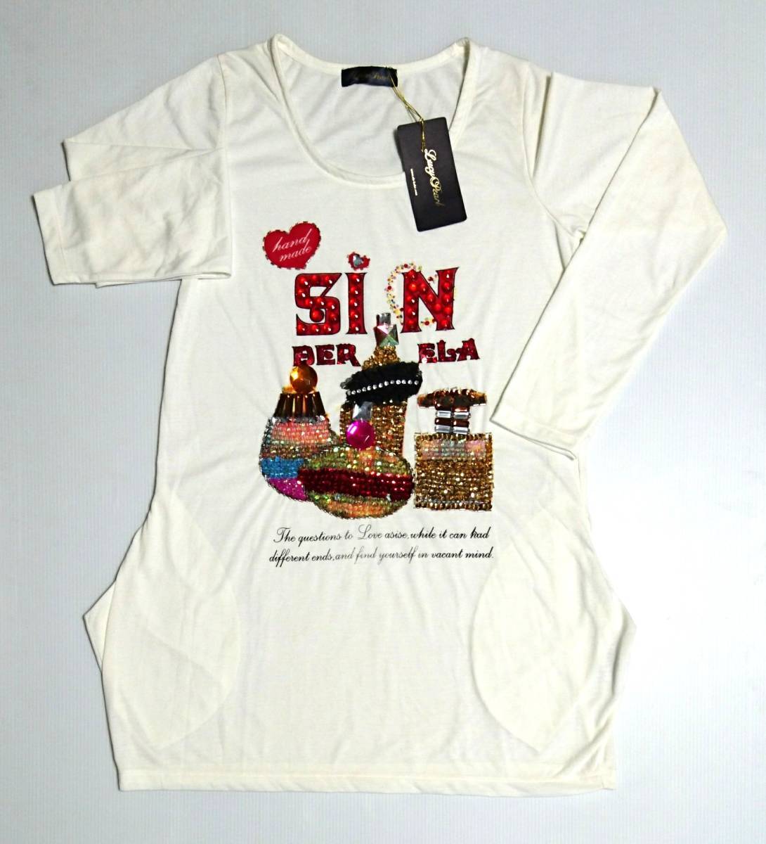 - 70%off 訳あり新品 Lucy Pearl ロング丈 長袖 スパンコールTシャツ 5631-1107 レディース 38 ルーシーパール Tシャツ