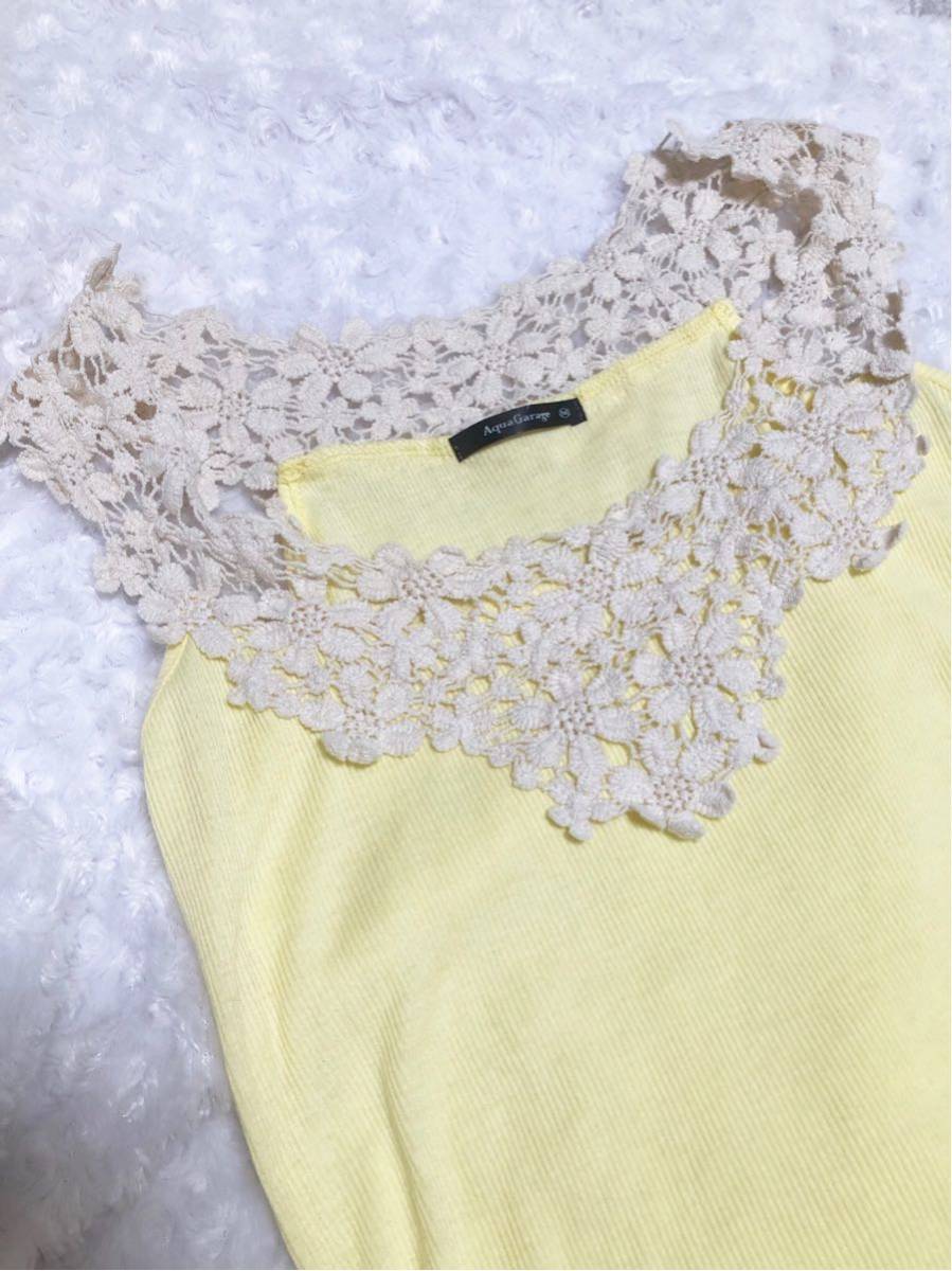 > タンクトップM キャミソール トップス インナー アンダーウェア 無地 フラワー編み 花柄 刺繍レース デイリー ガーリー チラ見せ イエロー
