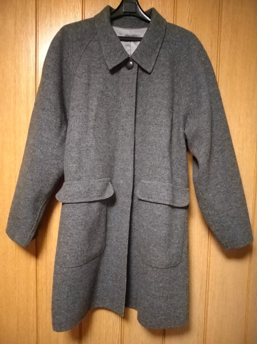 - 中古 ツートン グレー シンプル ロングコート 高品質 毛 ウール 80% フリーサイズ
